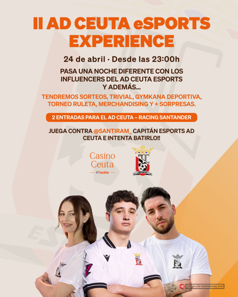 Únete a la II AD Ceuta eSports Experience el 24 de abril en el Casino Ceuta. Juega contra @SantiRam_, gana entradas para el Racing y vive una noche gamer única.